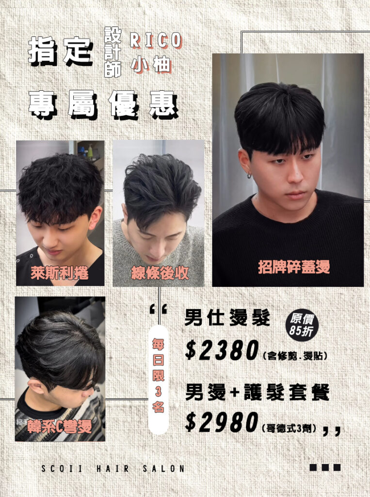 【𝐒𝐂𝐎𝐈𝐈】指定設計師|男生燙髮優惠
